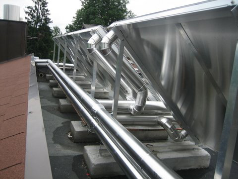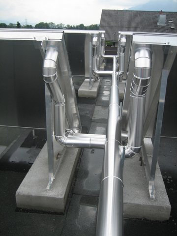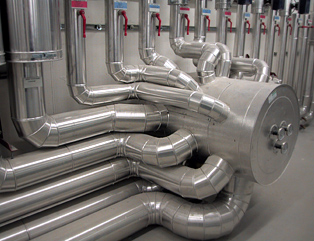 Wir verkleiden unter anderem Rohrleitungen, die im Freien liegen. Die Wärmedämmung wird wie oben beschrieben mit einer gitternetzverstärkten Aluminiumfolie kaschierten Lamell- oder Steinwollmatte ausgeführt. Nach der Montage von perfekt passenden Abstands- und Verkleidungshalterungen erfolgt die wetterfeste Verkleidung bzw. die Einhausung mit Trapezblech oder anderen Materialien.