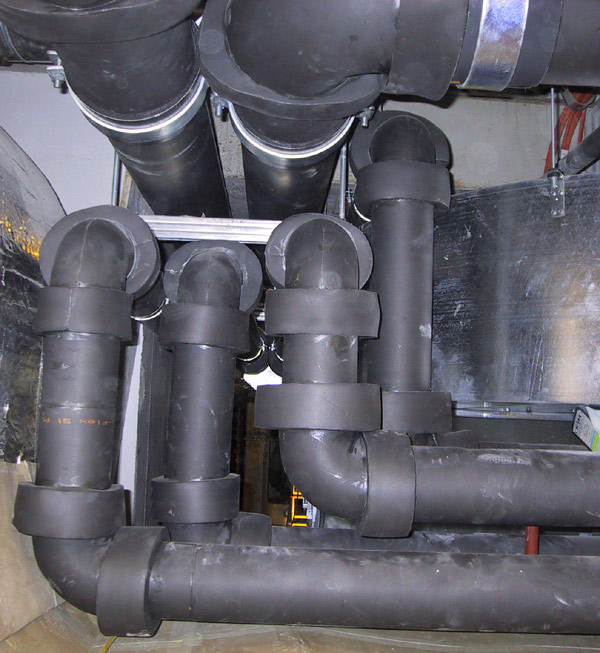 Elastomer ist ein flexibler Schaumstoff auf Basis synthetischen Kautschuks mit geschlossenzelliger Materialstruktur in Form von Schläuchen oder Platten. Die Längs- und Rundnähte sind dampfdicht verklebt. Auf Wunsch fertigen wir darüber eine Ummantelung aus Alublech oder PVC.
