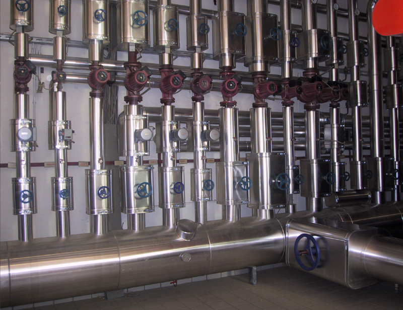 Das Abisolieren erfolgt einseitig durch eine gitternetzverstärkte Aluminiumfolie, kaschierte Lamell- oder Steinwollmatten sowie Rohrschalen. Darüber kommt ein Mantel aus Aluminiumblech, verzinktem Blech, Grobkornblech oder Edelstahl.